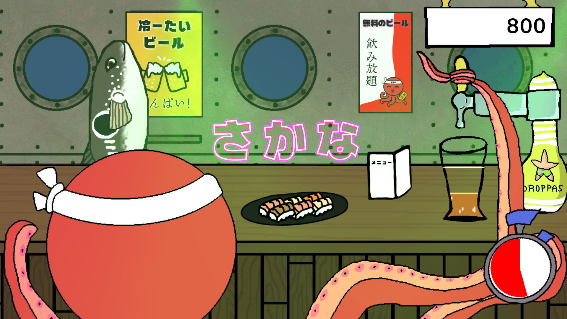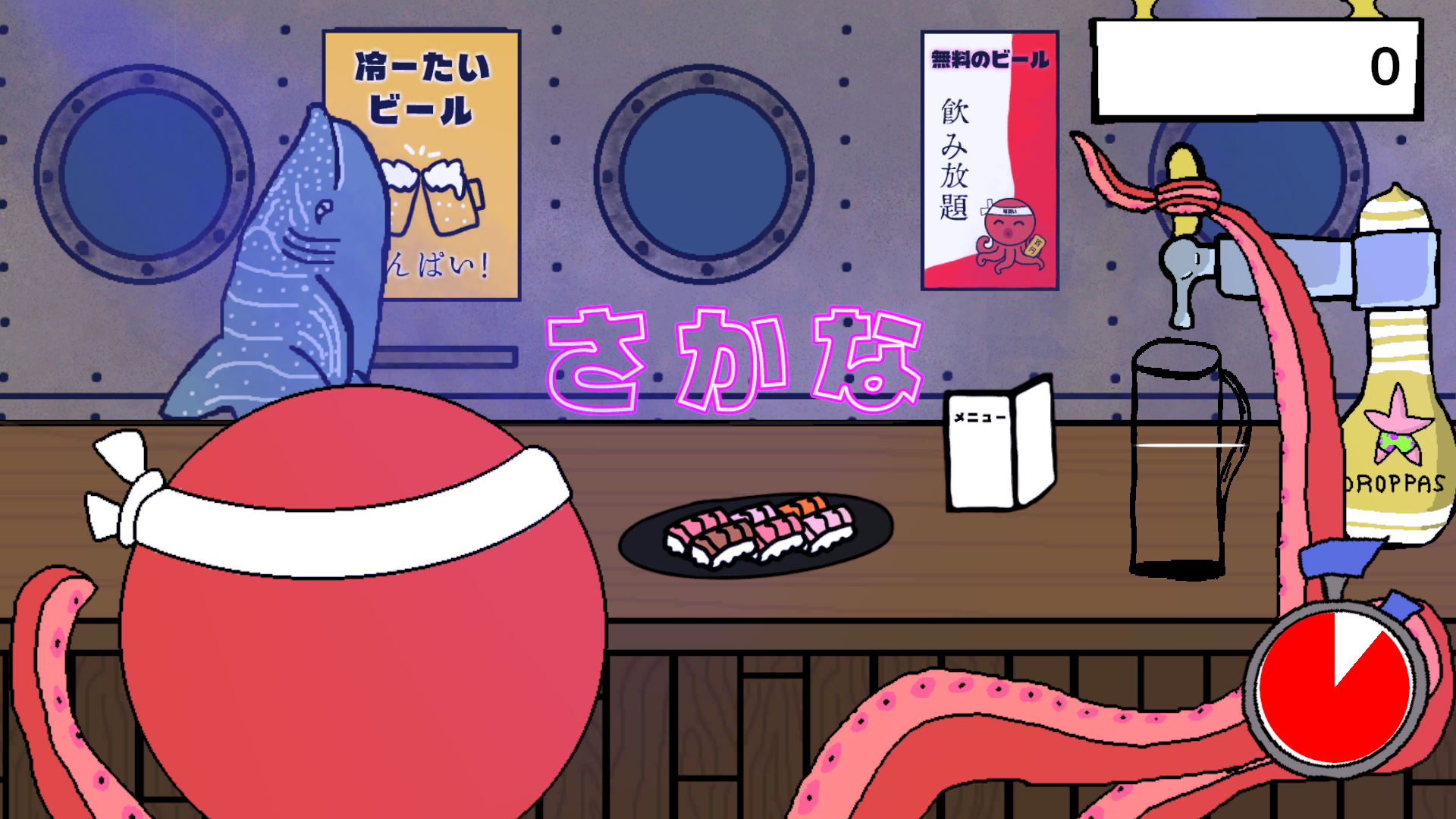 You play Nama, a barman-octopus working in his submarine bar "生ビール". Pours some beers to your patrons, but only to the desired amount. Do not fill the brim (event if it's tempting) !
